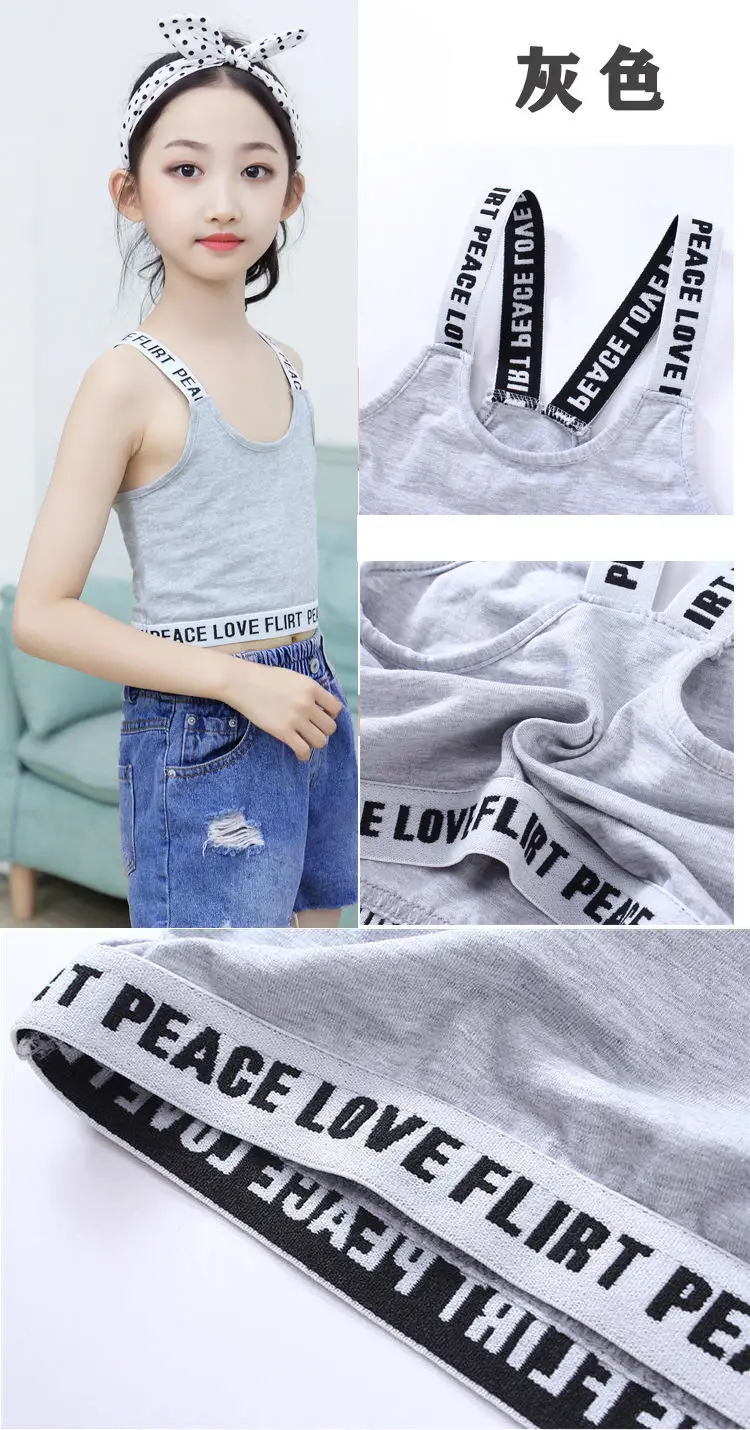 Спортивный тренировочный бюстгальтер для девочек 2 шт. хлопковые топы с буквами для подростков нижнее белье для детей подростков дышащий жилет для молодых студентов одежда