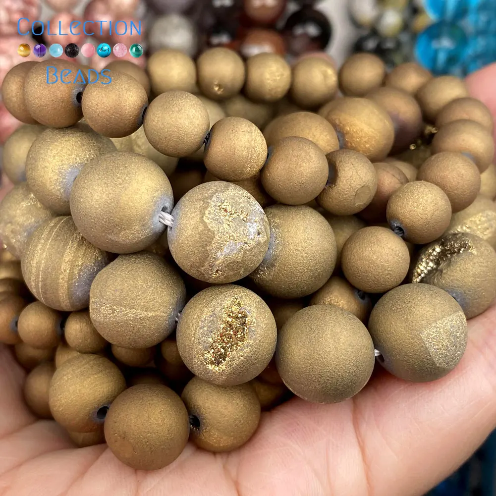 Натуральный камень позолоченные Druzy Agates бусины Свободные Круглые прокладки для изготовления ювелирных изделий 6-12 мм DIY аксессуары для браслета оптовая продажа