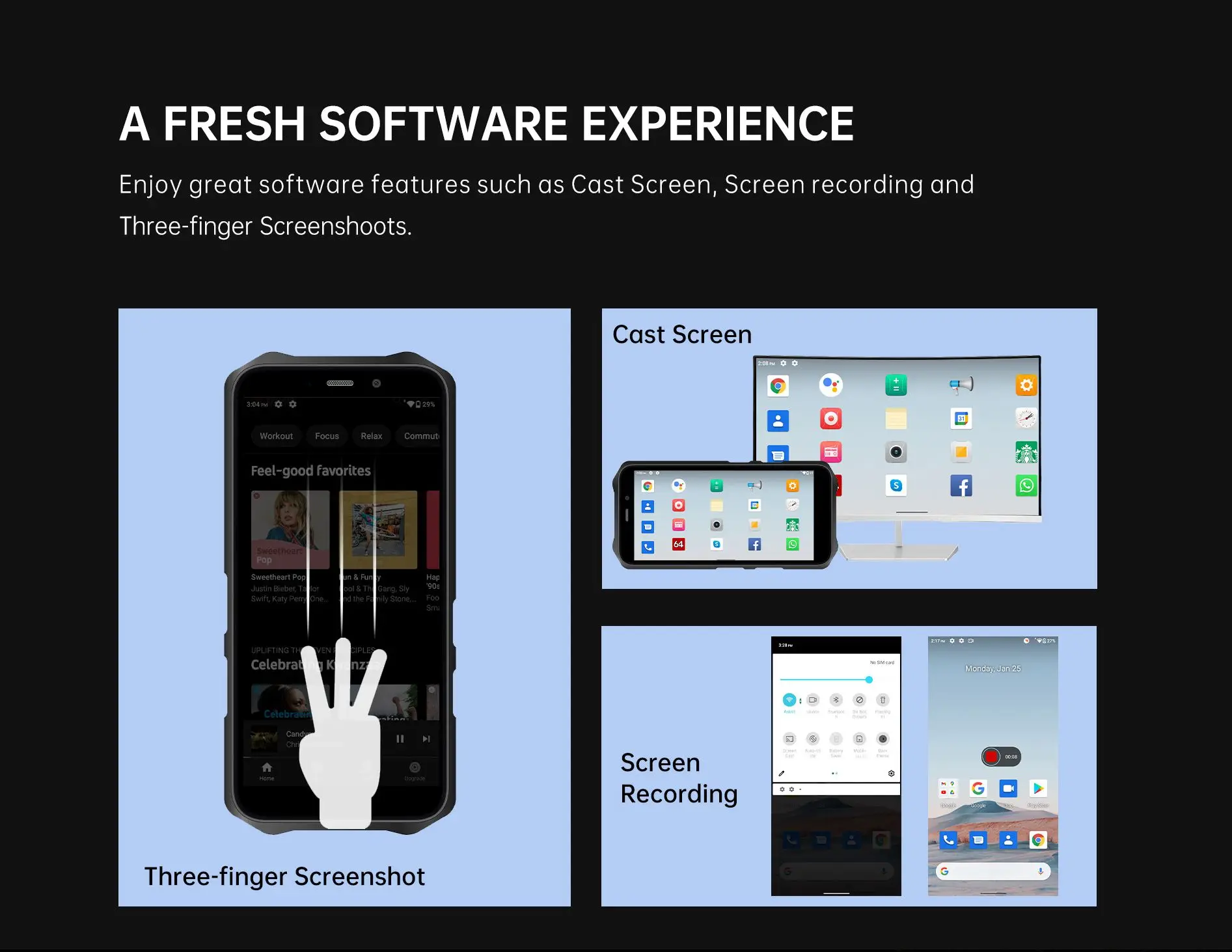 Наслаждайтесь отличными функциями программного обеспечения, такими как литой экран, запись экрана и три пальца важные инструменты для активного отдыха на открытом воздухе, съемка экрана. Мощный светодиодный фонарик tri и многое другое.