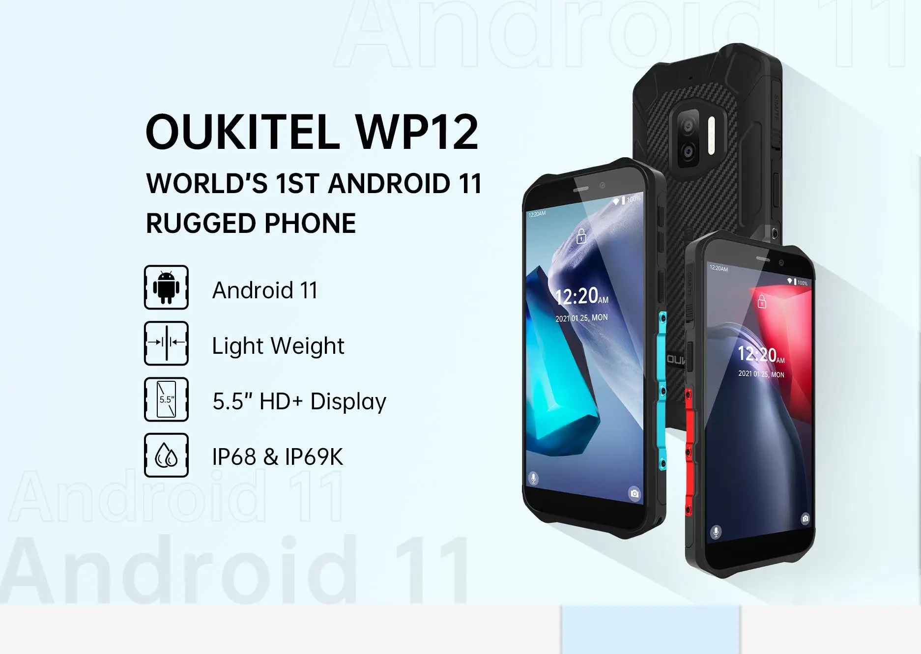 Смартфон OUKITEL WP12, 4 + 32 ГБ, 5,5 мА ч, 13 МП, 4000 дюйма, водонепроницаемый, усиленный, IP68IP69K, HD + дисплей Мобильный телефон дюйма, Android 11