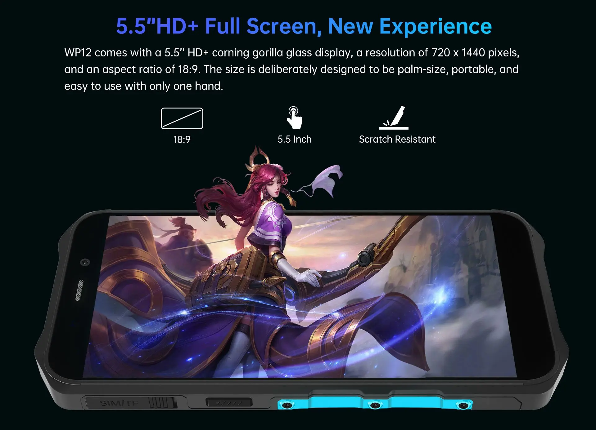 ★【Дисплей tela resistente de 5,5 polegadas com relaçao de aspecto de 18:9】Wp12 fica super forte corning gorilla glass, 5 vezes mais difisa, urso choques e arranhыes, tornando-se um смартфон real resistente. (corning gorilla glass, 18:9, релаксао-де-аспекто, 88% релаксао tela-corpo, resoluçao 720*1440)
