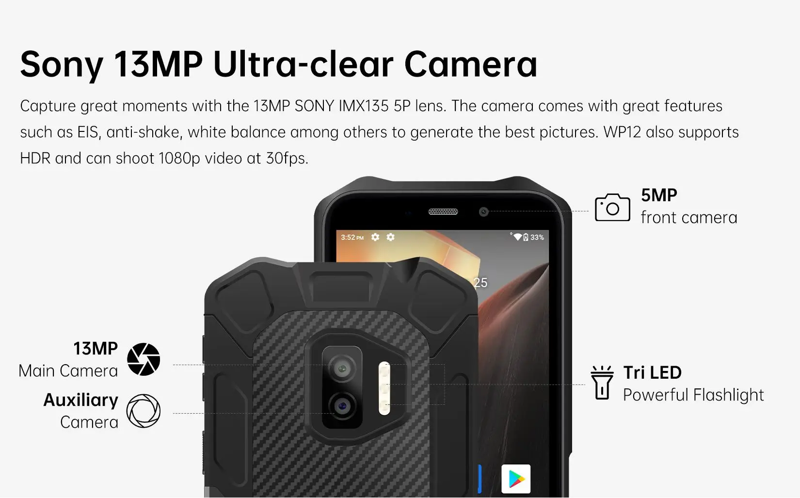 ★【Водонепроницаемый смартфон ip68 с защитой от пыли】Companheiro para o trabalhador industrial e os entusiastas exteriores dos esportes: встроенный дизайн com corpo ultra forte, resistant e seguro, wp12 esta pronto para lutar com você contra todos os desafidios! (Ip68 impermevel à prova de poeira à prova de choque baixa temperatura)