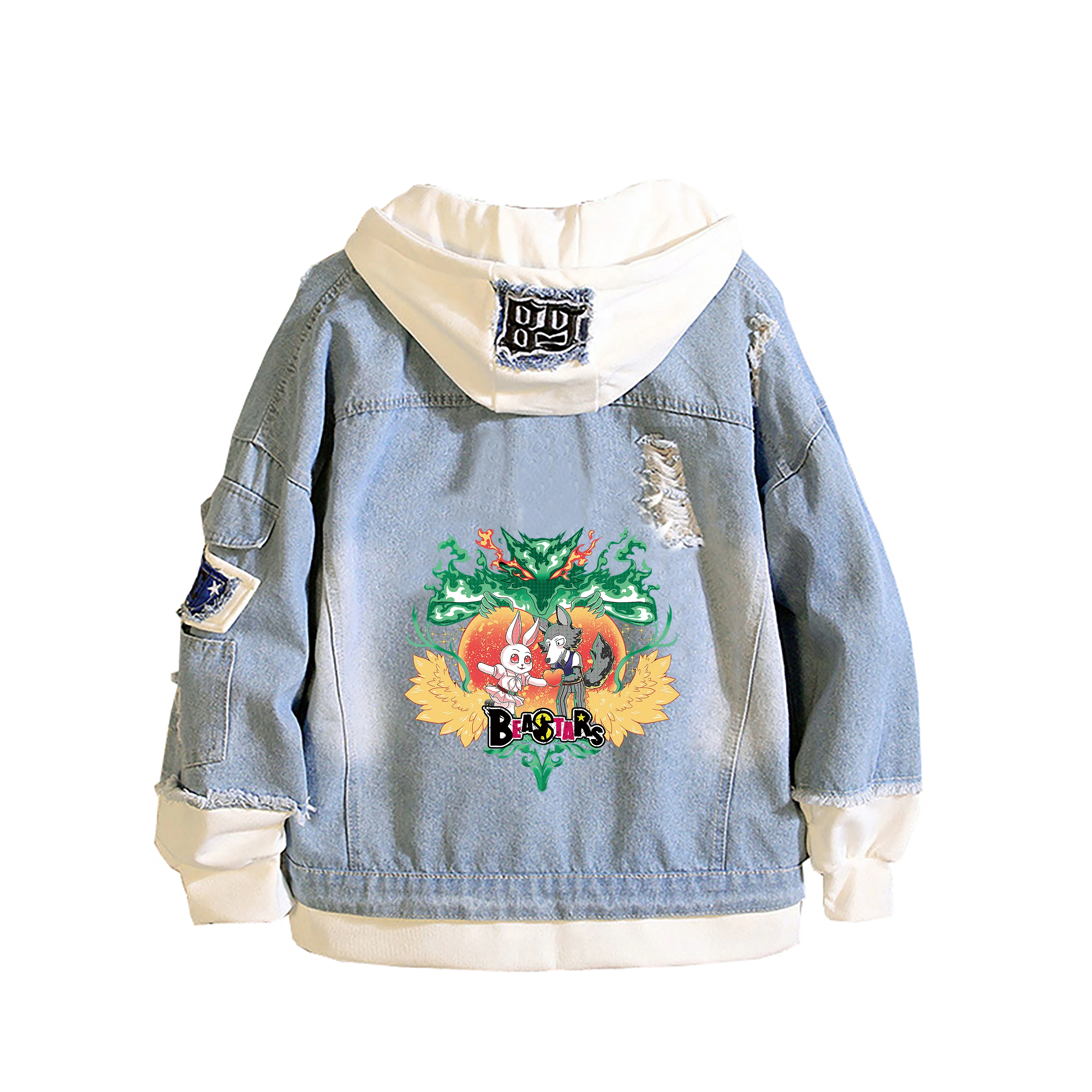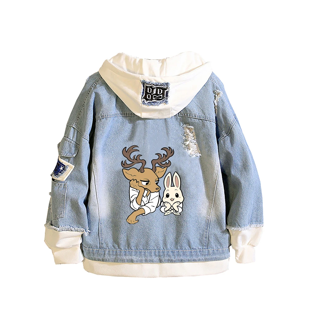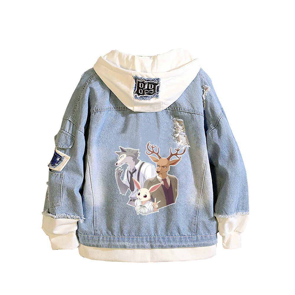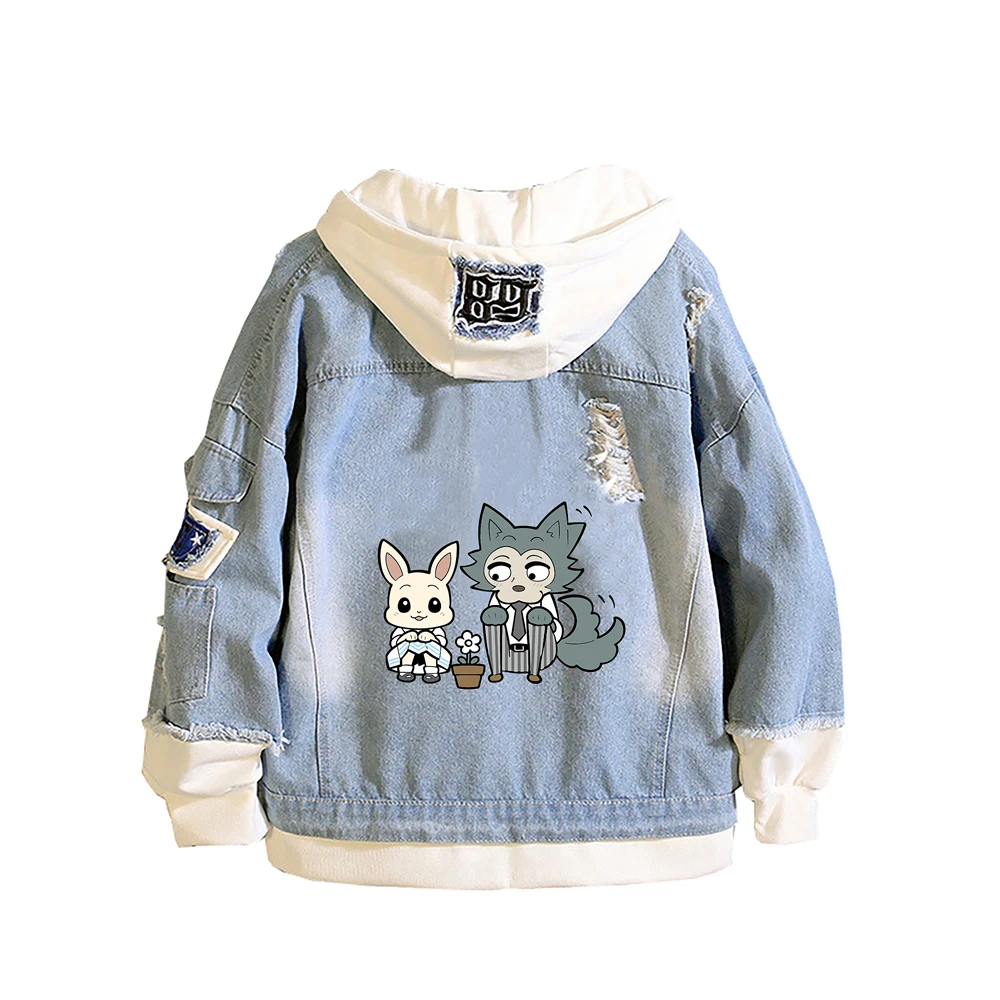 Джинсовые куртки BEASTARS с аниме, мультяшная толстовка с капюшоном в стиле Харадзюку, джинсовые толстовки, уличная одежда в стиле Харадзюку, пальто для пар