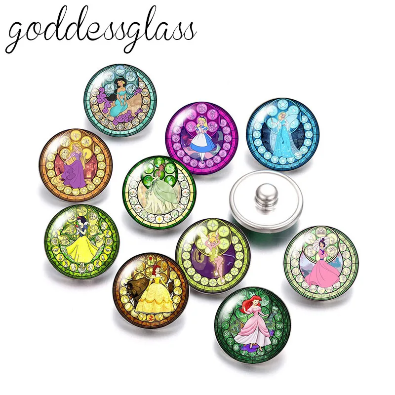 Disney принцессами Эльза, Белль Белоснежка Жасмин Алиса: безумие возвращается 10 шт. Круглый Фото 18 мм кнопки для 18 мм Оснастки ожерелье, сделай сам, ювелирное изделие