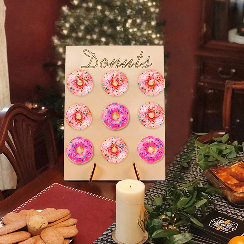 Деревянные поделки пончик стены десерт бар для держащих букет невесты на свадьбе, Свадебные украшения пончики стены держит; Милые босоножки в деревенском стиле в форме пончика подставка для досок