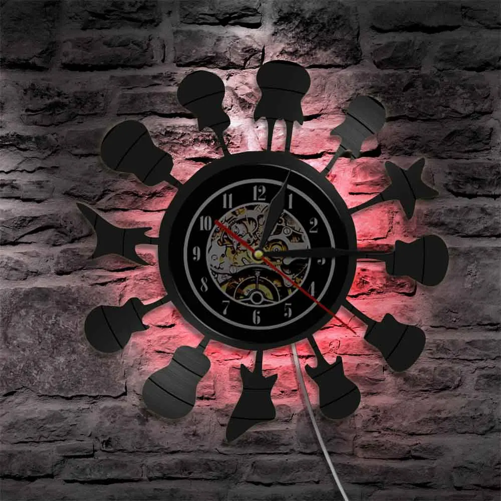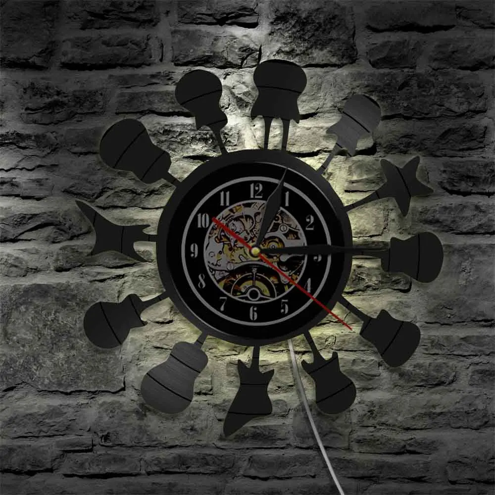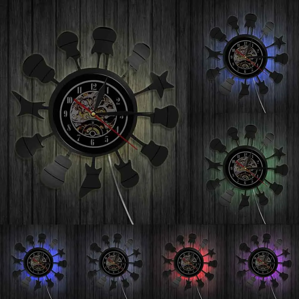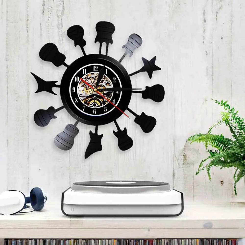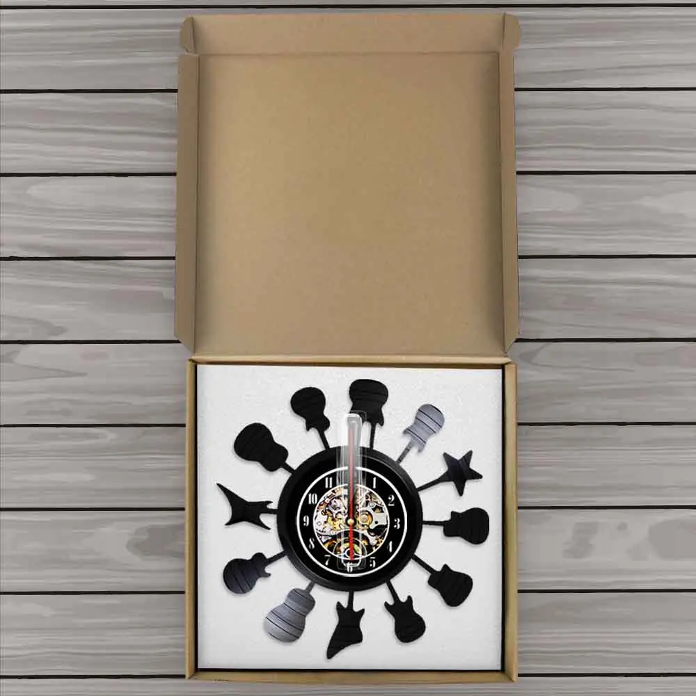 Настенные часы с силуэтами круга гитар виниловая пластина настенные часы Рок Музыка электрический гитарист домашний Декор Ретро музыкальный альбом настенные часы