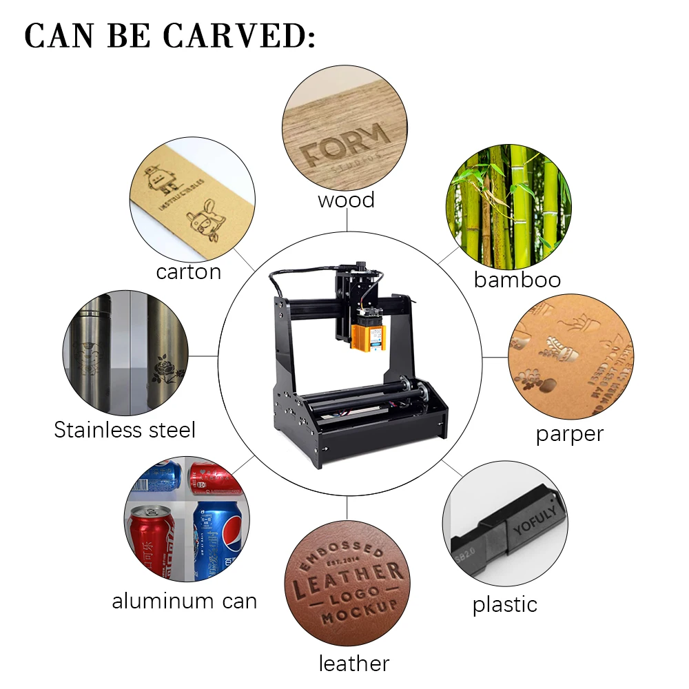 15 Вт лазерный гравировальный станок с ЧПУ цилиндрической настольной Портативный мини аппарат для лазерной порезки автоматические алюминиевые банки DIY надписи машина