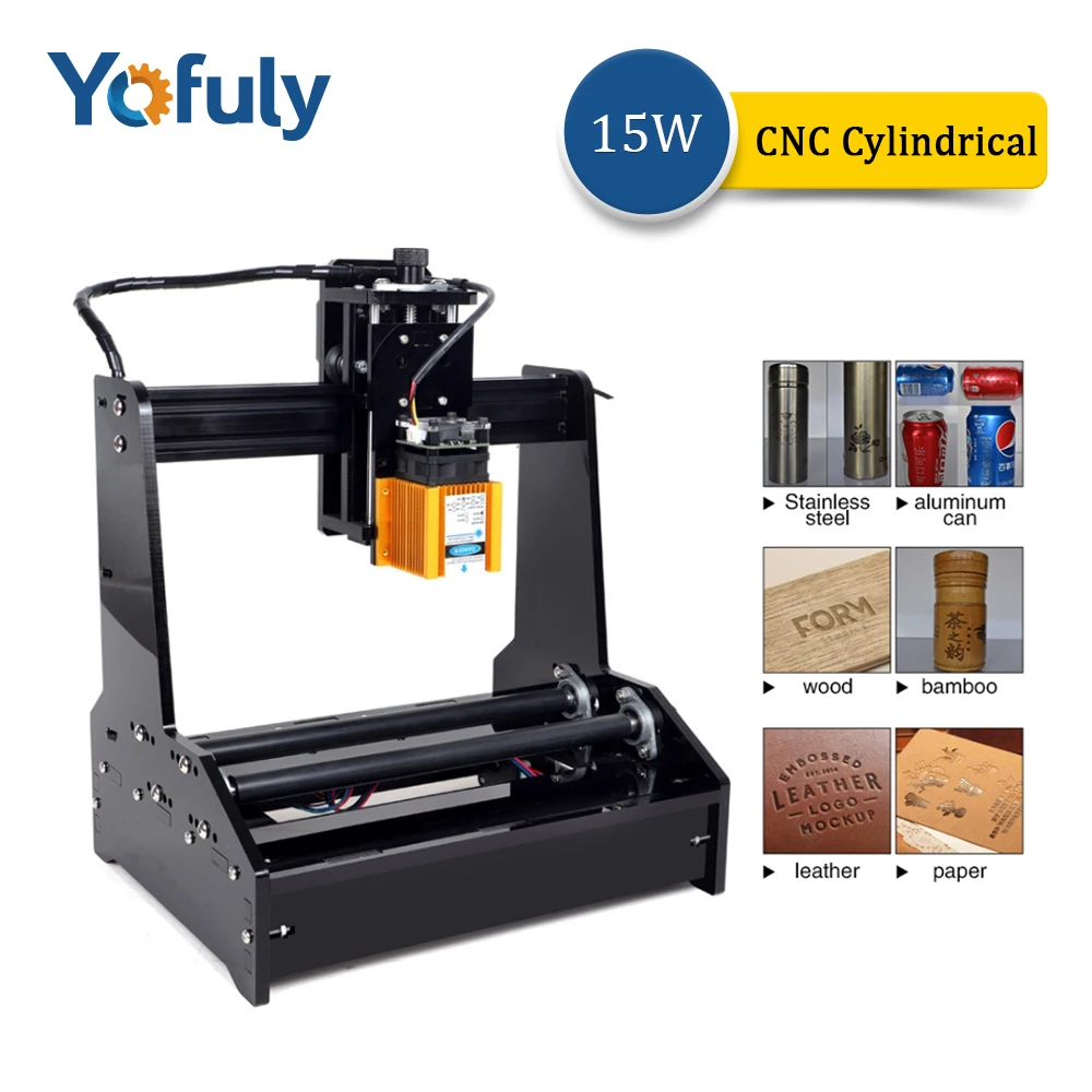 15 Вт лазерный гравировальный станок с ЧПУ цилиндрический Настольный портативный мини лазерный гравер автоматические алюминиевые банки DIY маркировочная машина