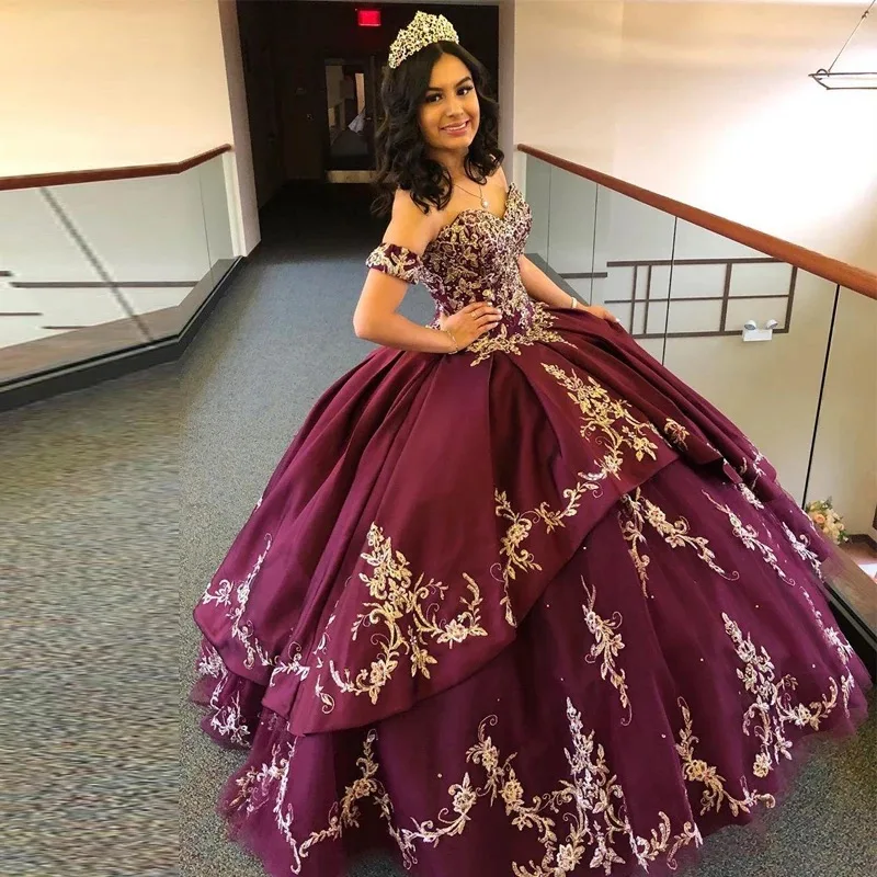 Бордовое Пышное Платье 2021, бальное платье принцессы, милое платье с открытыми плечами, аппликацией и блестками, милое Многоярусное Пышное Платье 15