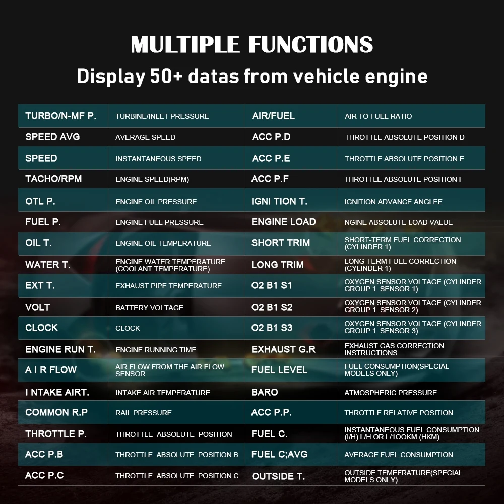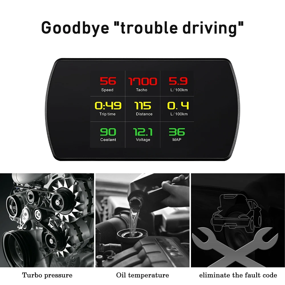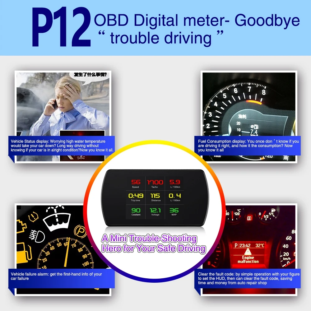 P12 является бортовым компьютером OBD, может отображать множество функций, если они совместимы.