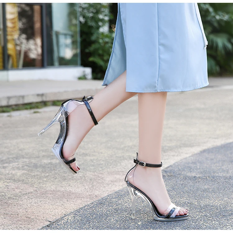 Босоножки женские прозрачные на высоком каблуке 9 см, с ремешком на...