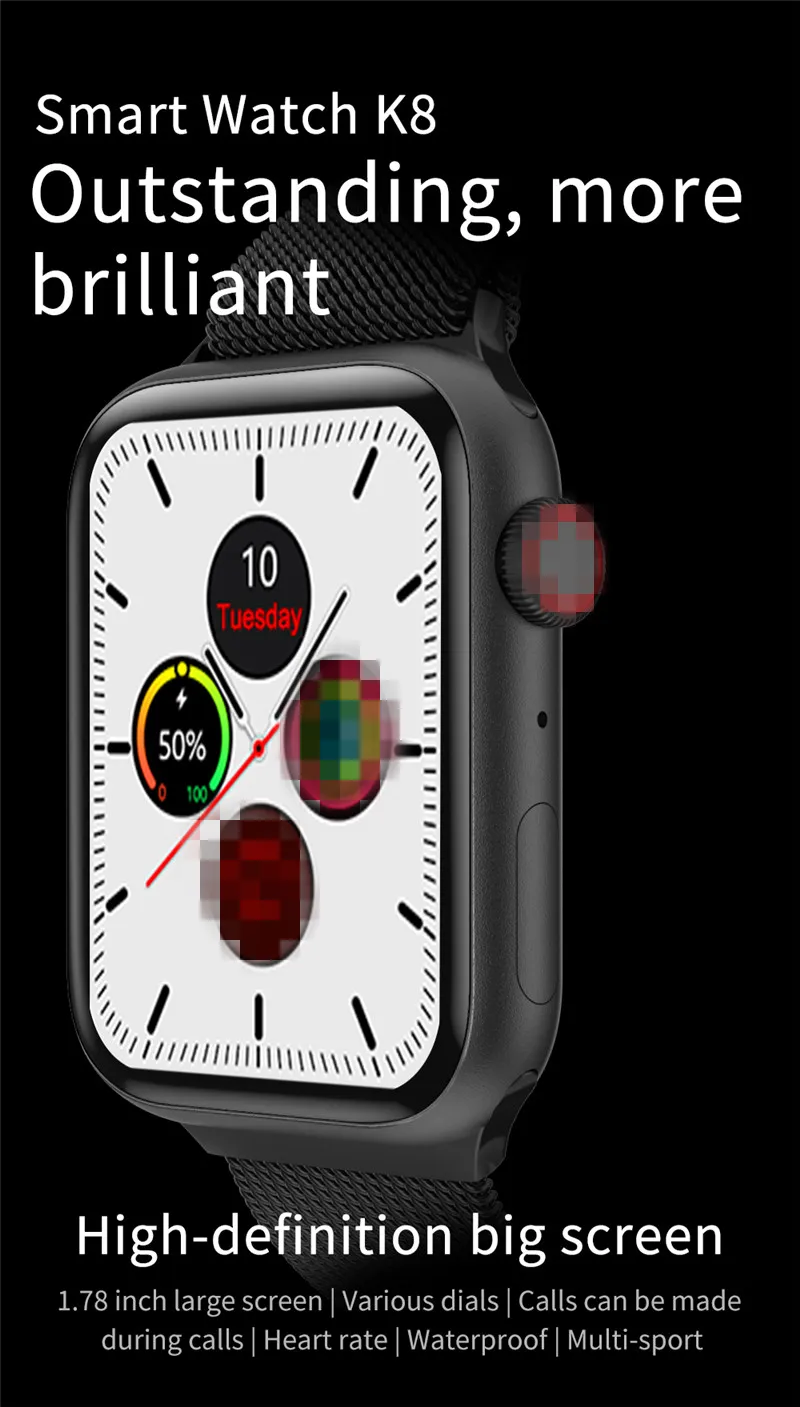 Смарт-часы IWO K8, 2020, унисекс, 1,78 дюйма, HD, 320x385, 44 мм, пульсометр, Bluetooth, звонки, Смарт-часы PK Iwo FK78, W56, W54, W55