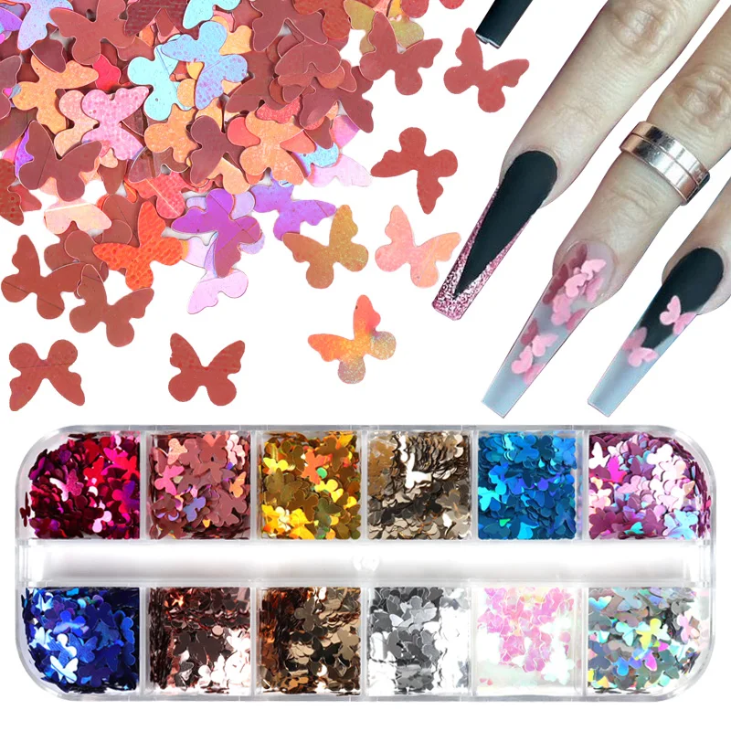 Набор голографических блесток для ногтей, бабочки, цветы, 4 шт., 5 ...