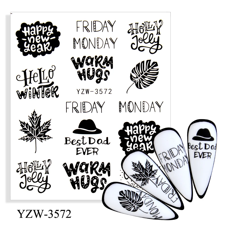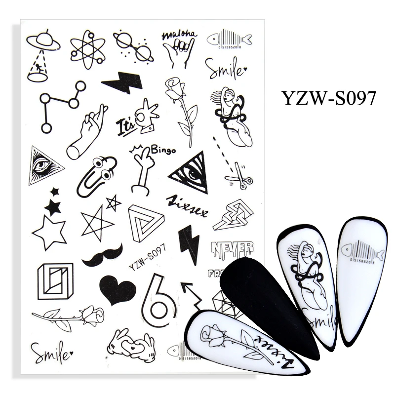 1 шт. наклейки для ногтей слайдер черный цветок лист Геометрические...