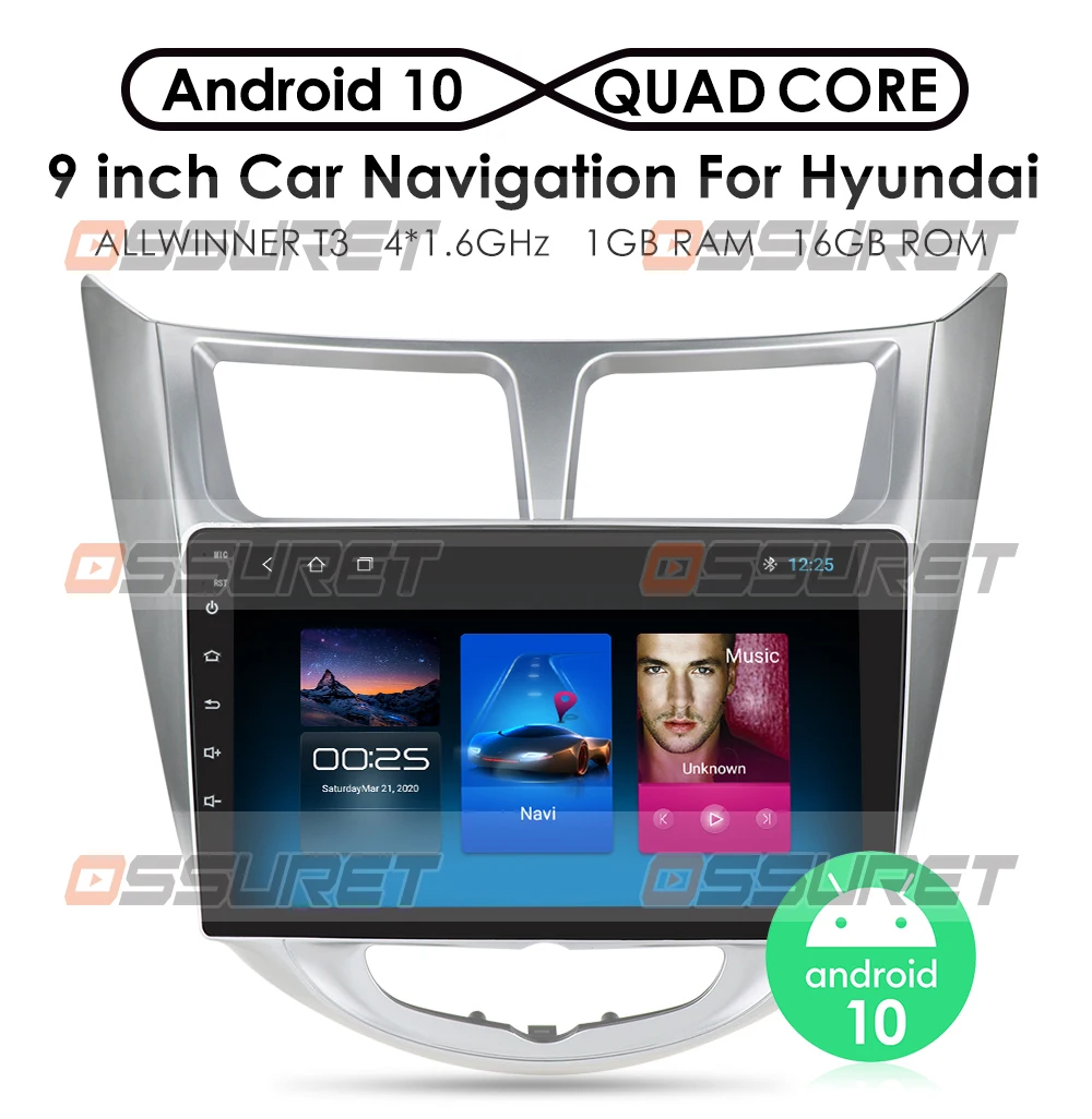 Автомобильный мультимедийный плеер, Магнитола на Android 10, с GPS, для HYUNDAI Solaris 2010 -2016, ACCENT Verna, типоразмер 2 Din, 9 дюймов