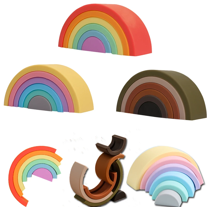 Игрушка для раннего развития ребенка 6 шт.компл. Радужный съедобный силиконовый Дженга детский когнитивный цветной обучающий предмет детский Прорезыватель для зубов подарок для роста