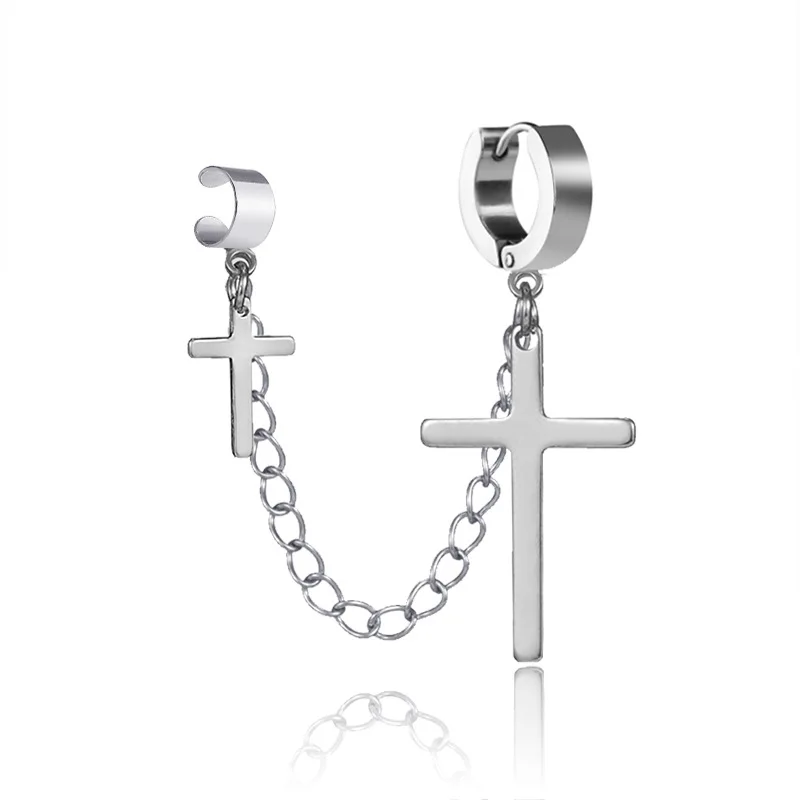 Серьги в стиле панк для мужчин и женщин, ювелирное изделие из нержавеющей стали, металлическая цепочка с двумя крестами, подвески черногозолотого цвета, Готическая бижутерия