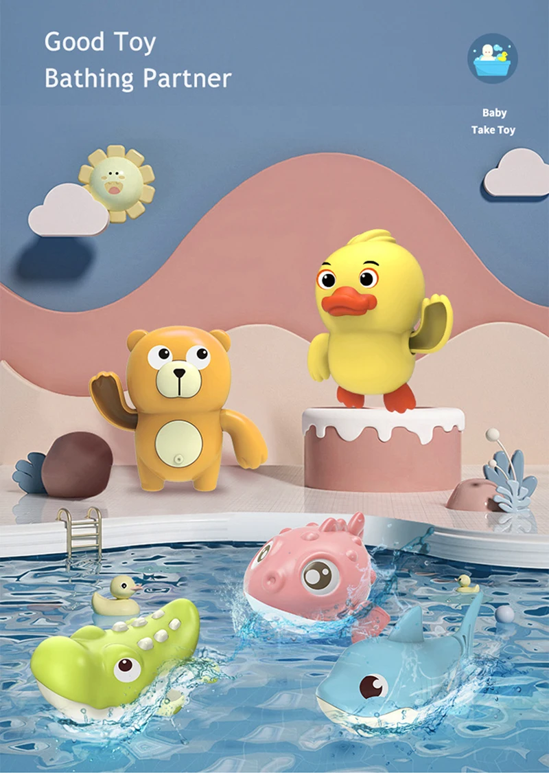 Летние милые игрушки для купания с животными для маленьких мальчиков и девочек, медвежонок, Акула, крокодил, заводные плавательные игрушки для ванной