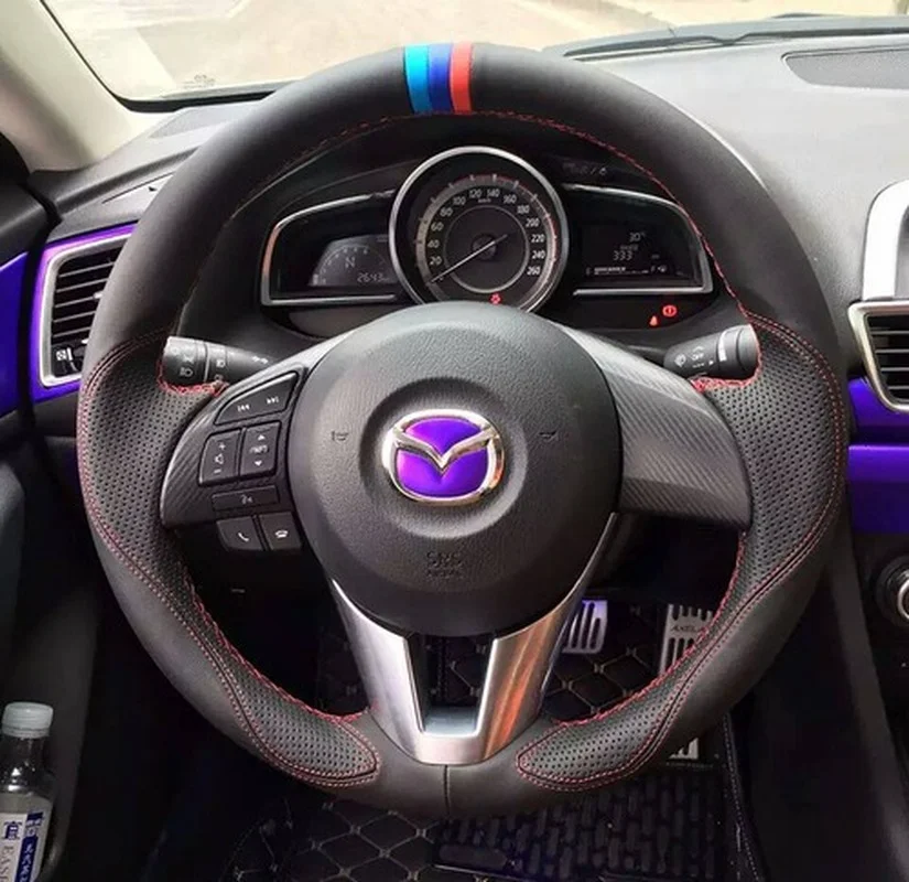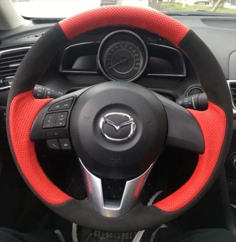 DIY ручной работы из кожи и замши чехол рулевого колеса автомобиля для Mazda 3 CX-5 CX-8 Cx-4 Cx-3 Atenza аксессуары для интерьера