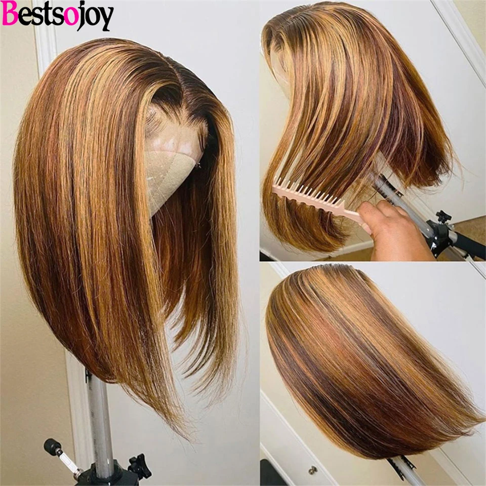 Хайлайтер HD кружевной боб парик прямой 4x4 HD кружевной парик короткие волосы боб Омбре парик средней части бразильский парик с кружевом Реми