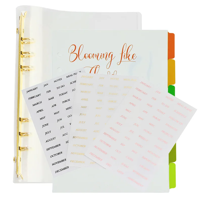 Пожалуйста, обратите внимание, что цена за единицу товара включает в себя: 1 набор прозрачного переплета A5 + 1 набор разделителей (6 шт.) + 3 листа ежемесячных наклеек (не включая внутреннюю бумагу и другие аксессуары)1. Размер кольца А5 21 мм Размер крышки: 6,7х9,2 дюйма2. Цвет покрытия: Прозрачный3. Размер кольца: 21 мм4. Цвет переплета: розовое золото/золото5. Материал: ПВХ пластик6. Толщина ПВХ: 1 мм7. Номера колец: 6 колец8. Посылка: белая подарочная упаковка9,21 мм кольцо может поместиться 135 листов заправки