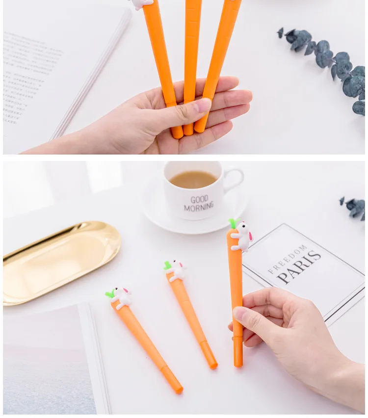 Ручка с черными чернилами в виде белого кролика и гелевая ручка в форме морковки, 1 шт., принадлежности для школы и офиса, Канцелярия: ручка с подписью