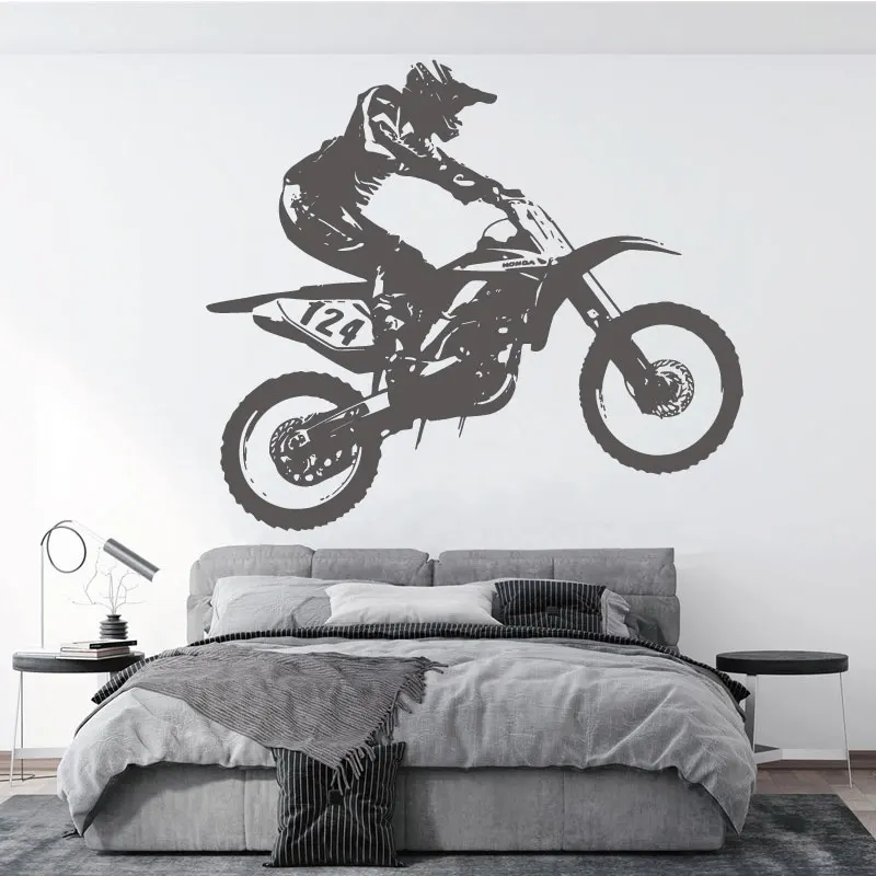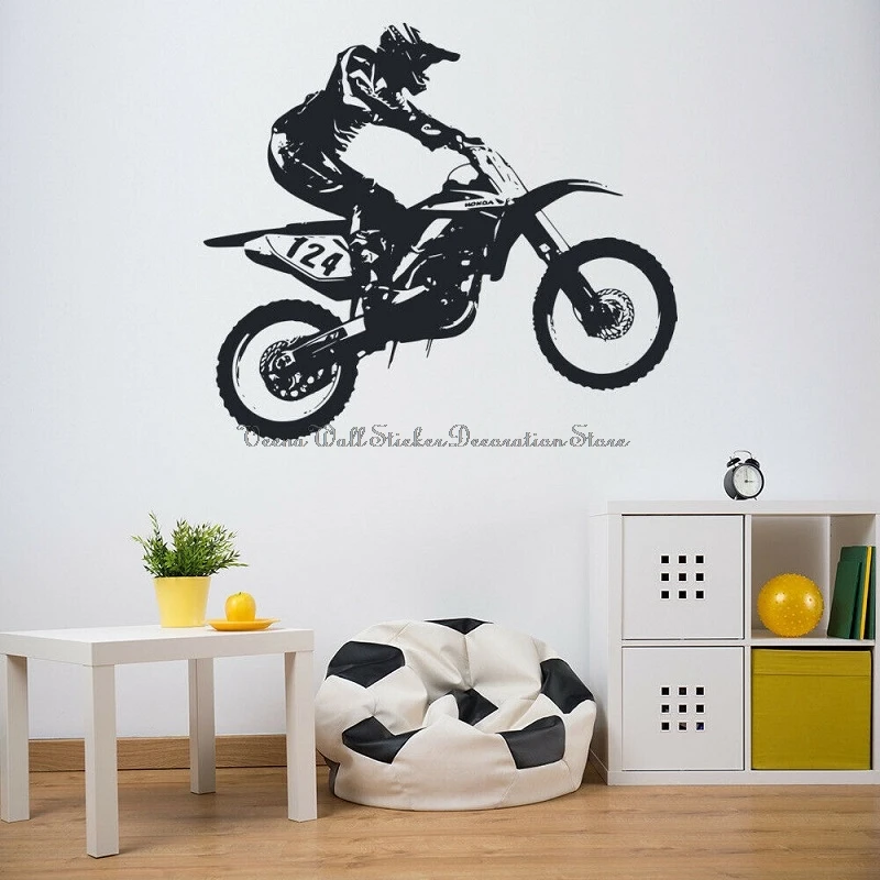 Наклейки на стену для мотокросса, велосипеда, трюков, гонок на мотоцикле, шоу, соревнований, украшение для двери мальчиков, виниловые наклейки MT15
