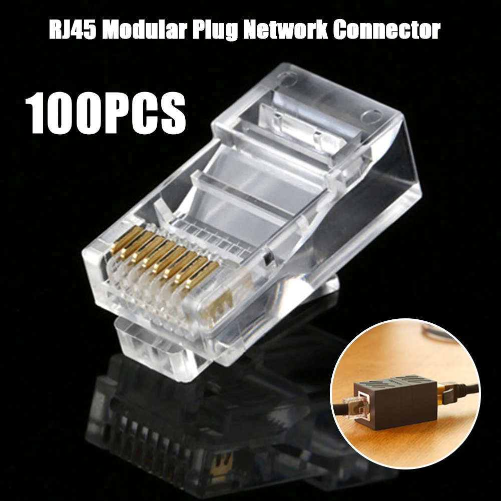 100 шт. Кристалл 8P8C RJ 45 Разъем модульный Ethernet сетевой кабель штекер Адаптер для UTP Cat5 Cat5e Cat6