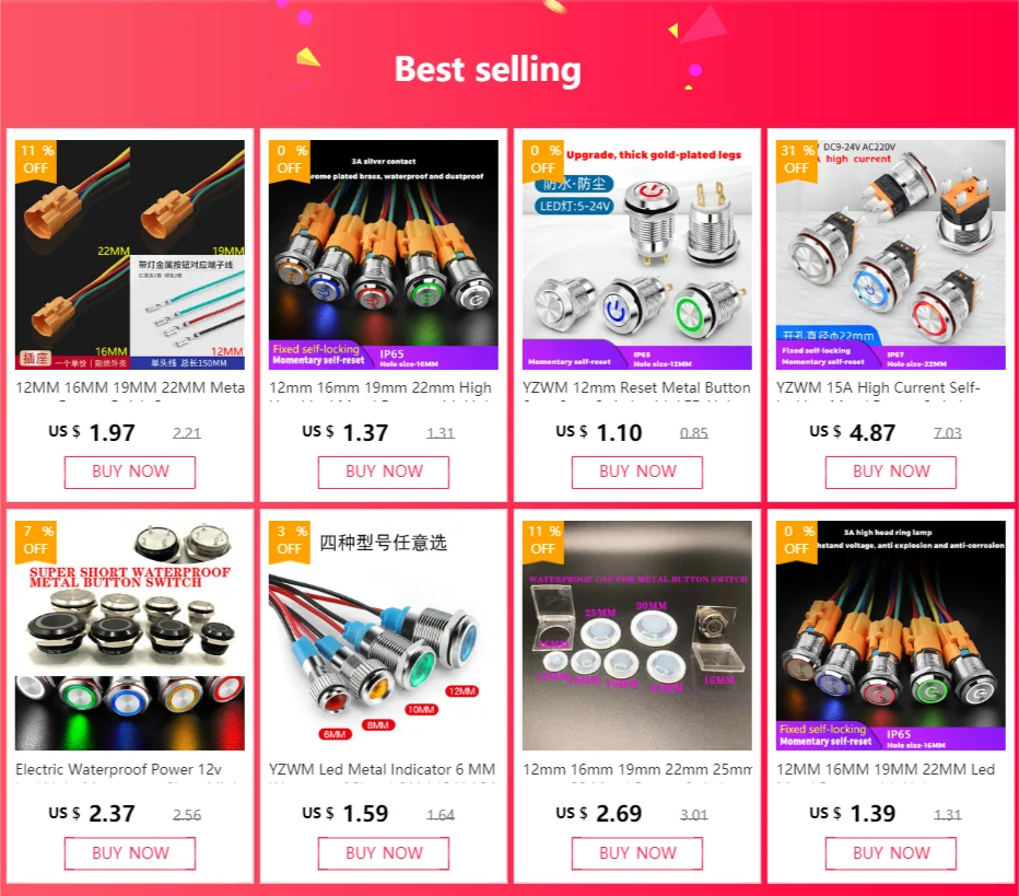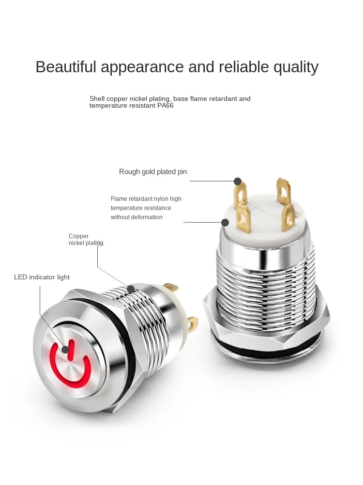 Страна: CA Color: red Size: 19MM Standard: Fixed self-locking Voltage: 12-24V Доставка: Cainiao Super Economy Global 30.06.2021