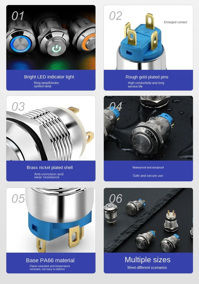 Страна: BR Color: blue Voltage: 12-24V Size: 22MM Standard: Fixed self-locking Доставка: Standard Shipping 21.08.2021