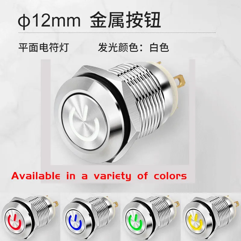 Металлическая светодиодная кнопка с Высокой Головкой, водонепроницаемая кнопка с светильник ческим сбросом блокировки, 12 мм, 16 мм, 19 мм, 22 мм, символ переключателя питания