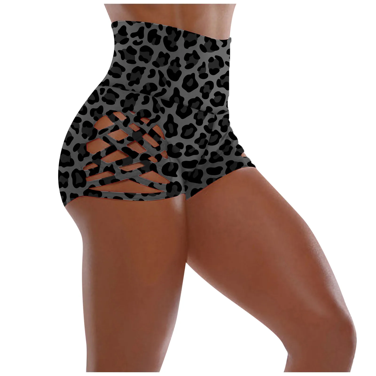 Женские тренировочные шорты, с высокой талией, однотонные, с вырезами, бандажные, спортивные штаны для фитнеса, женские шорты для бега Yo-ga