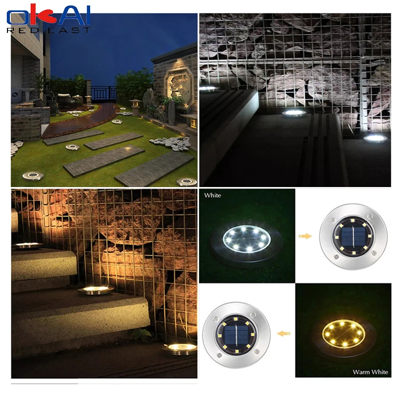 Солнечный подземный светильник, 8 светодиодов из нержавеющей стали,...