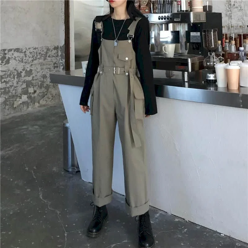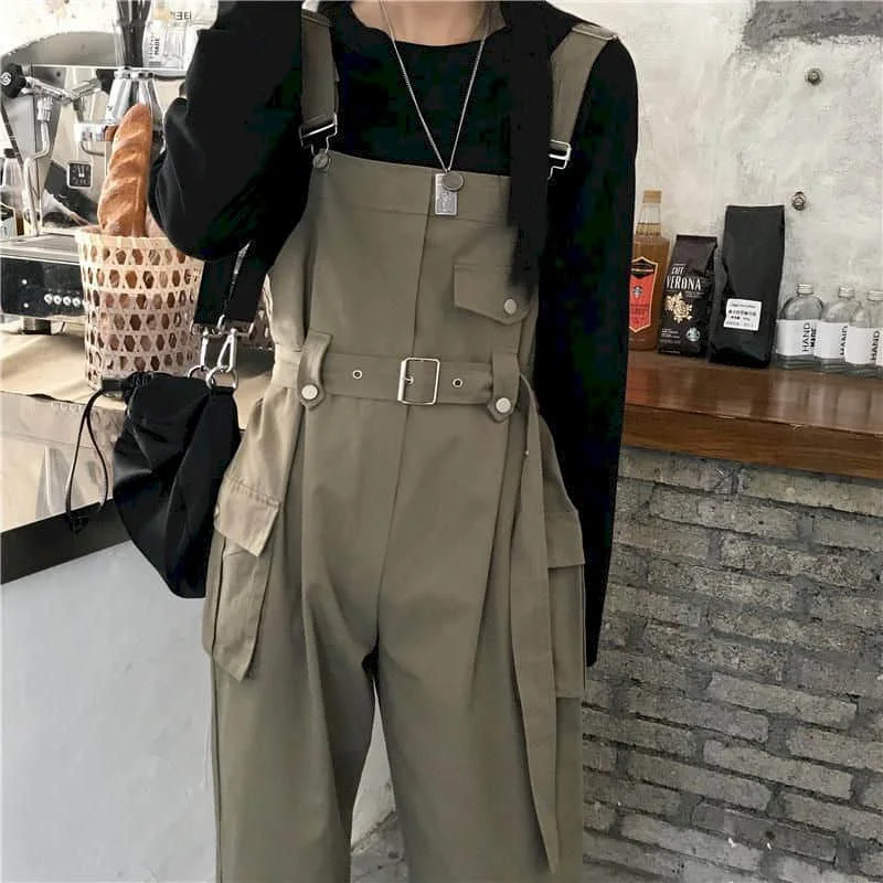 Комбинезон-карго Женский, весенне-осенний, прямой, с широкими штанинами, в стиле ретро
