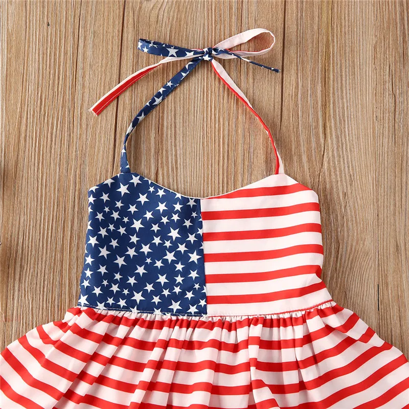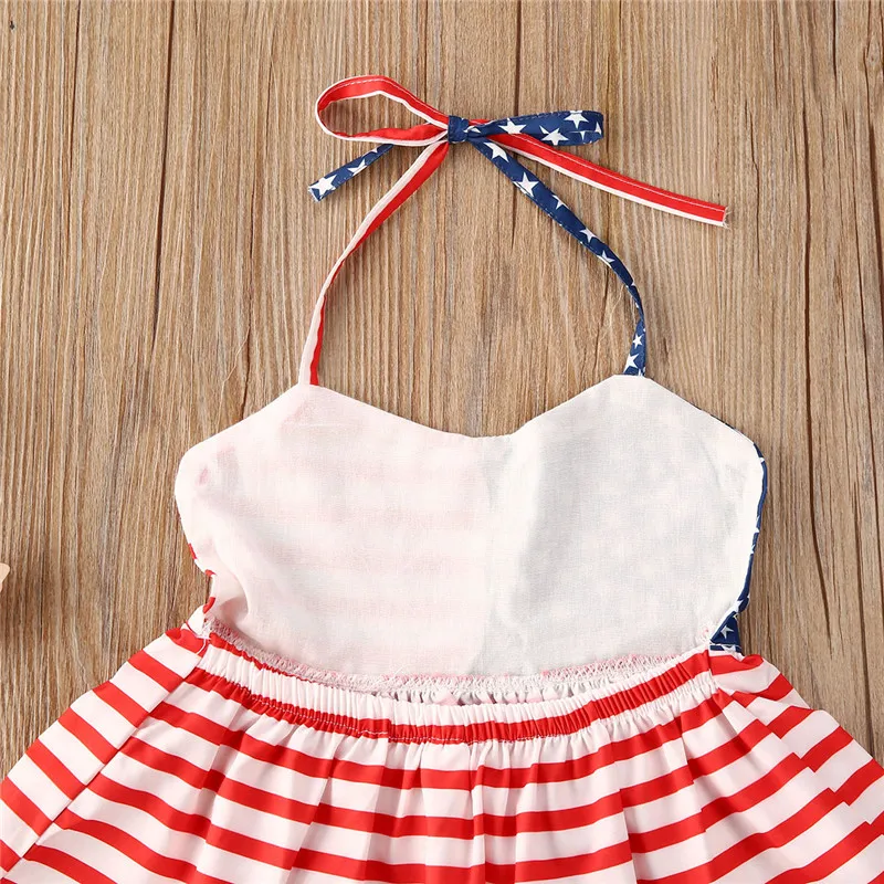 Комплекты одежды для девочек на День Независимости, одежда на 4 июля, полосатый топ с лямкой на шее + джинсовые шорты, детские комплекты для маленьких девочек От 1 до 6 лет
