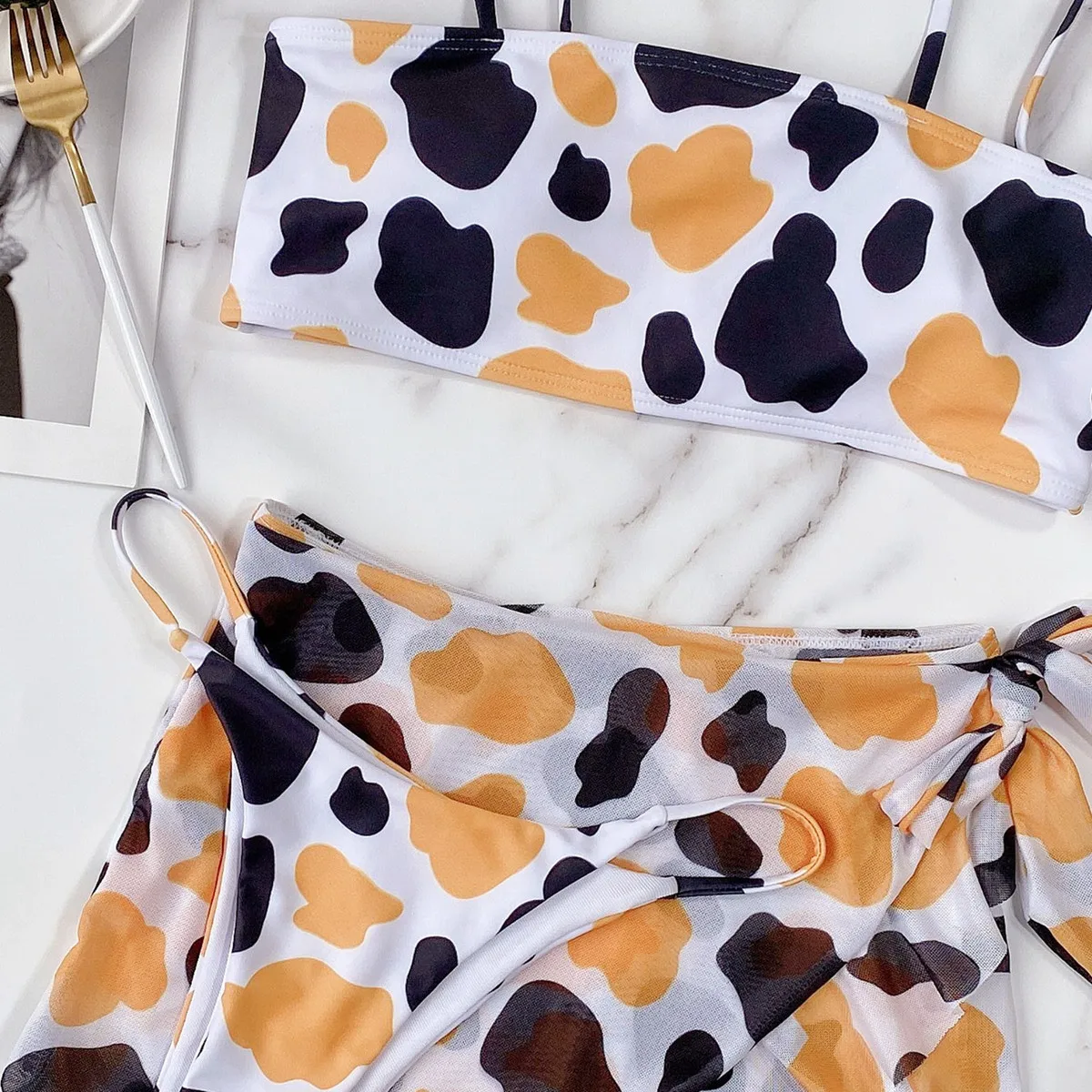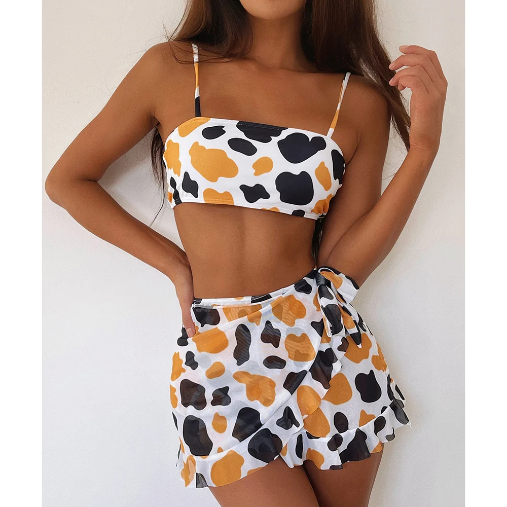 2021 сексуальный комплект бикини из трех предметов, женское бикини с юбкой, купальник, женский купальник, бикини с принтом, купальные костюмы, летняя пляжная одежда