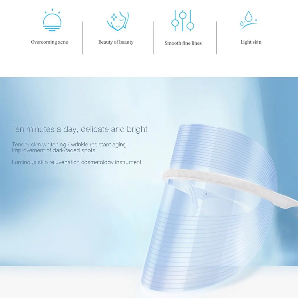 Косметическая маска для лица со светодиодный светильник кой, средство для фотонной терапии лица, 3 цвета, средство для омоложения кожи