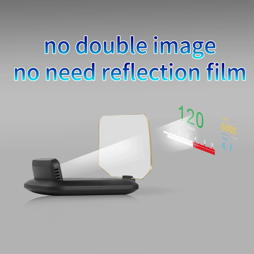 Проецирование информации на дисплее на отражающее стекло, отображение информации и чтение ее проще во время вождения, и нет необходимости наклеивать пленку отражения на лобовое стекло.