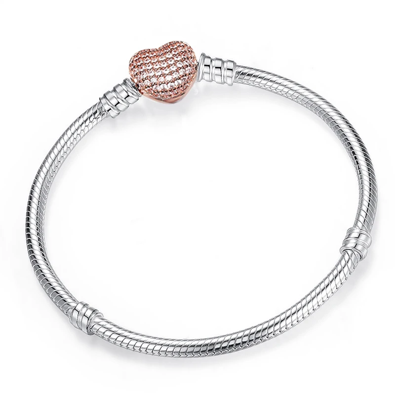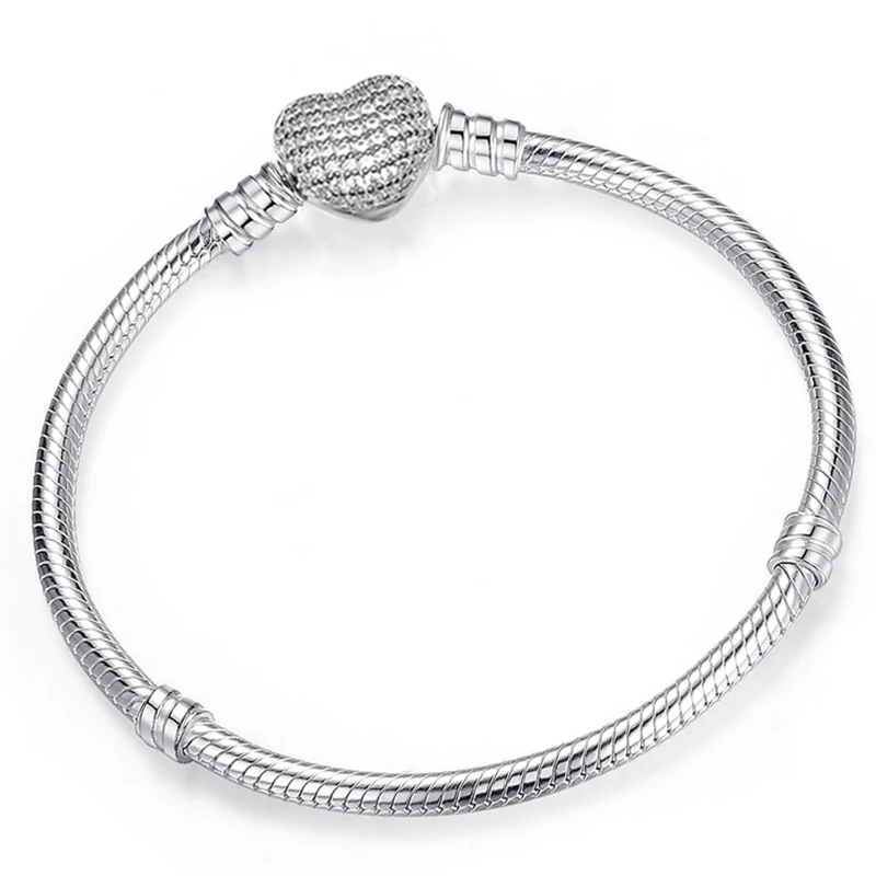 Женский браслет из серебра 925 пробы, с застежкой в виде сердца