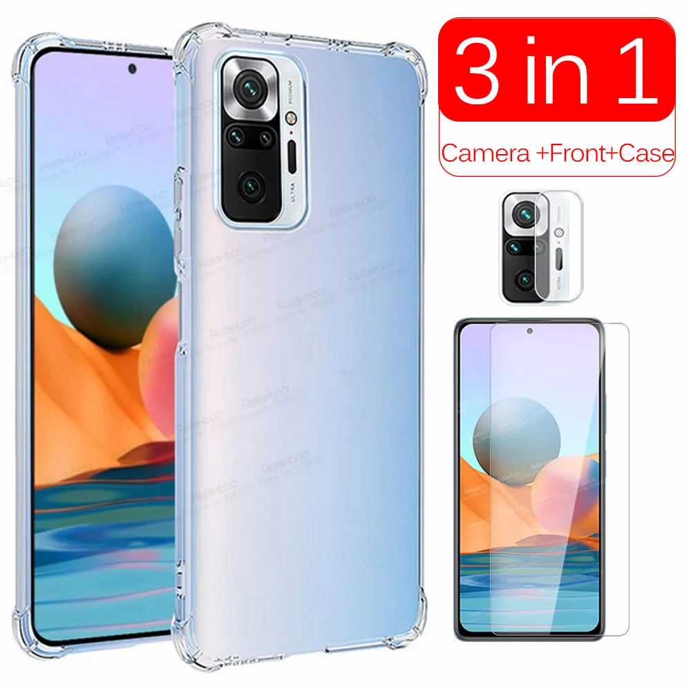 3 в 1 Прозрачный ударопрочный чехол для Xiaomi Redmi Note 10 Pro камера переднее закаленное стекло Xiomi Redme Note10 10Pro чехол для телефона