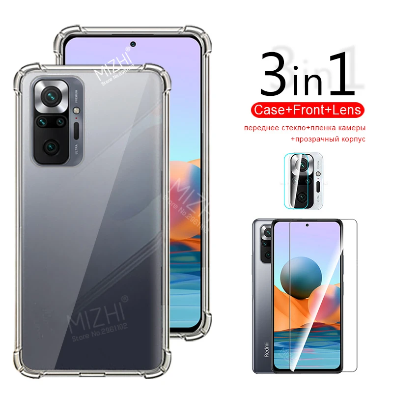 3-в-1 защитный чехол camere стекло для xiaomi redmi note10 pro экран протектор для iPhone xiomi redmy Примечание 10 pro 10pro задняя крышка