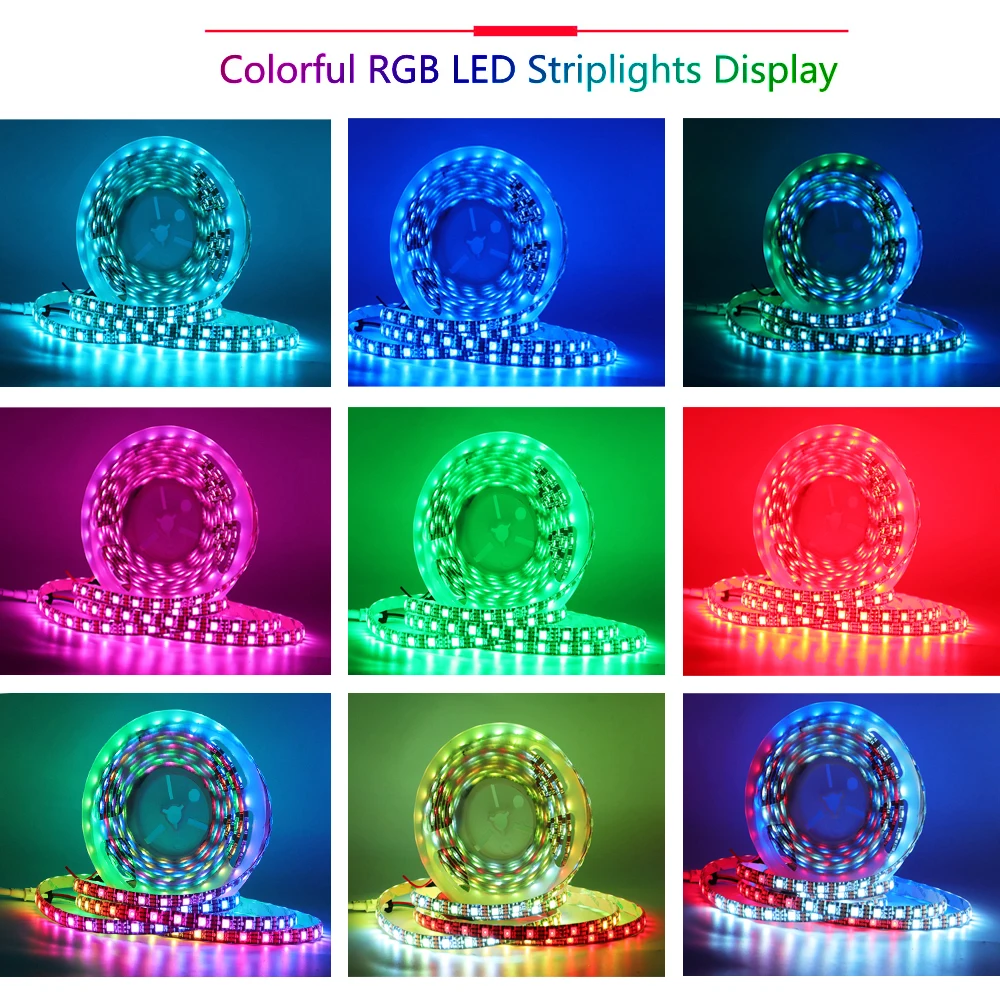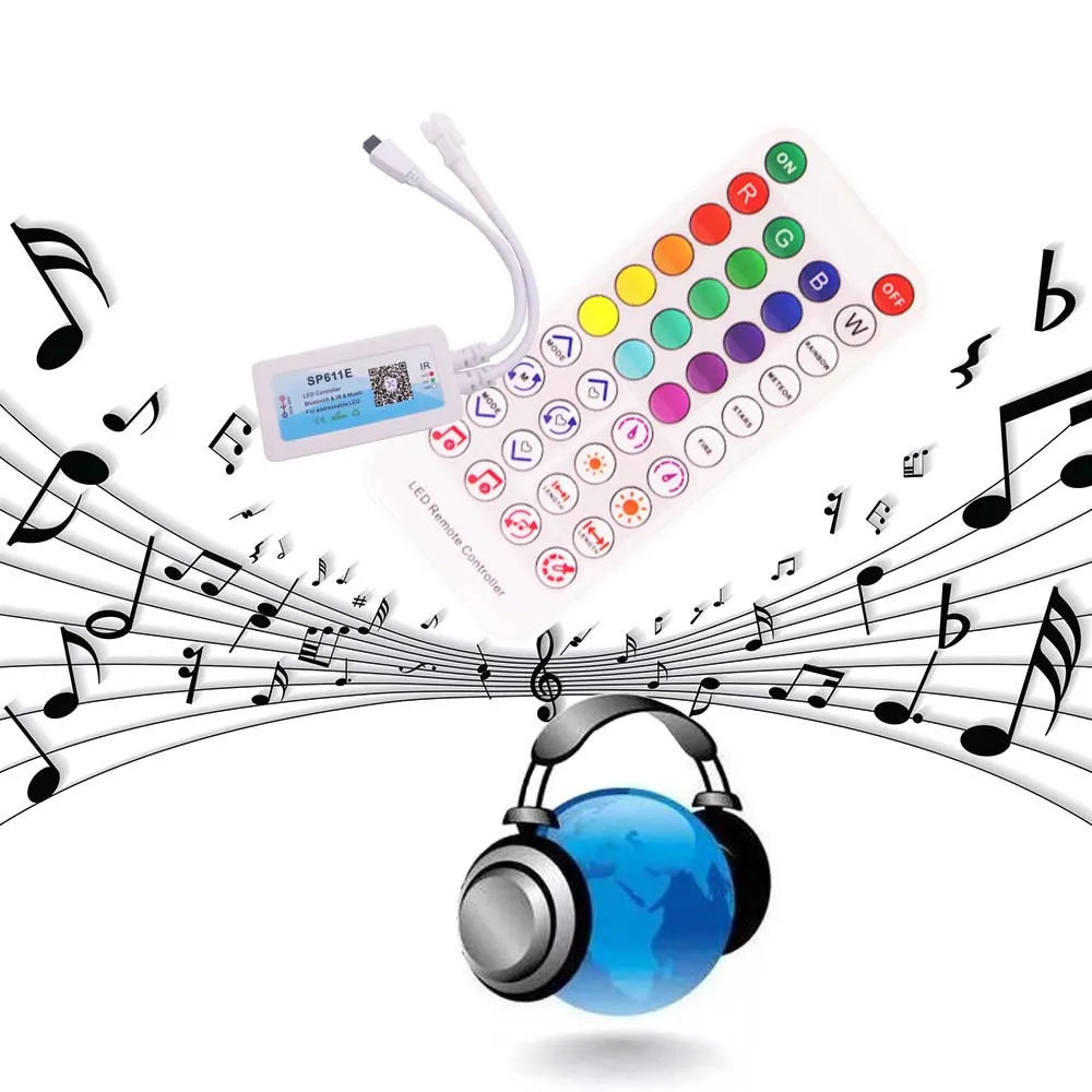 Набор светодиодных лент WS2812B с музыкальным контроллером SP611E, источник питания 5 В, индивидуально адресуемые светодиодные RGB лампы WS2812 IC для комнаты