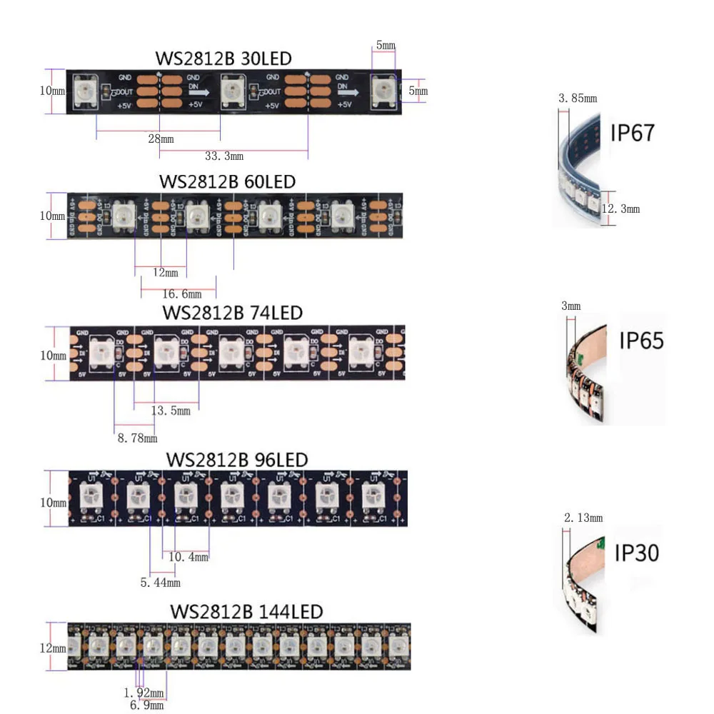 Количество светодиодов на метр30/60/74/96/144 Leds/m
