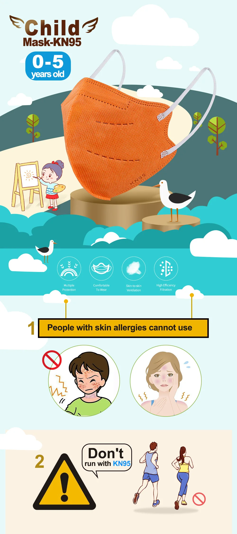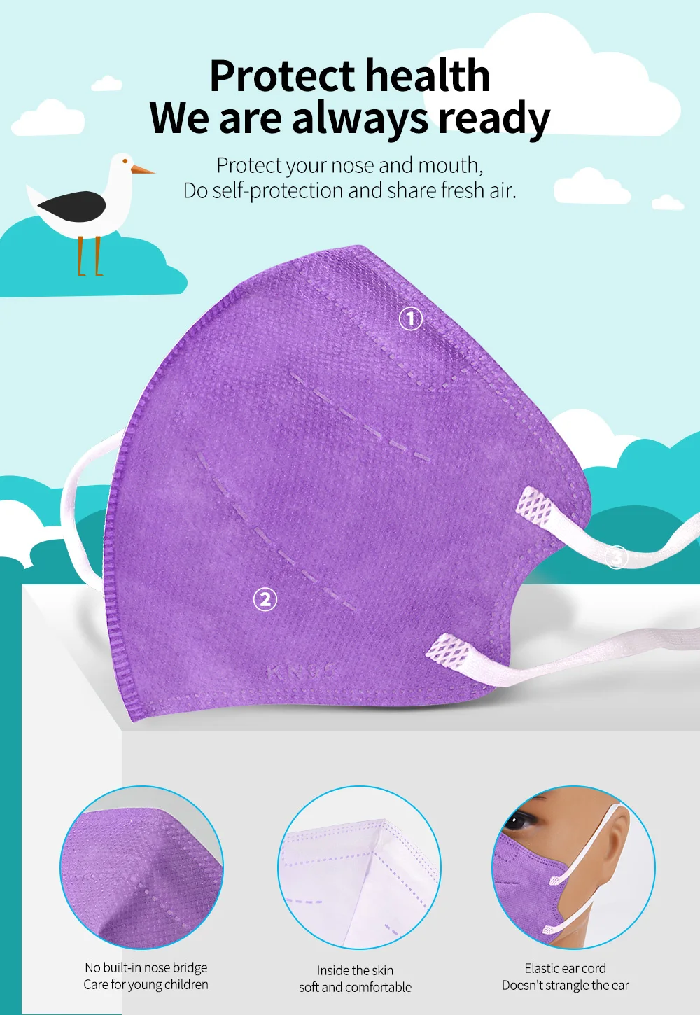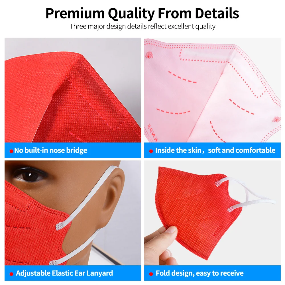 Обратите внимание: (1) маска для детей в возрасте От 0 до 5 лет напечатана на «KN95». (2) маска от 0 до 5 лет имеет 5 слоев. (3) без мостика для носа, потому что он предназначен для ухода за кожей ребенка.