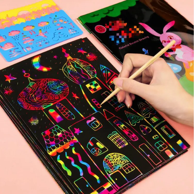 Набор карт для рисования, 59 шт.компл., волшебные цвета радуги, бумага для скретч Арта открыток, трафарет для граффити шт.