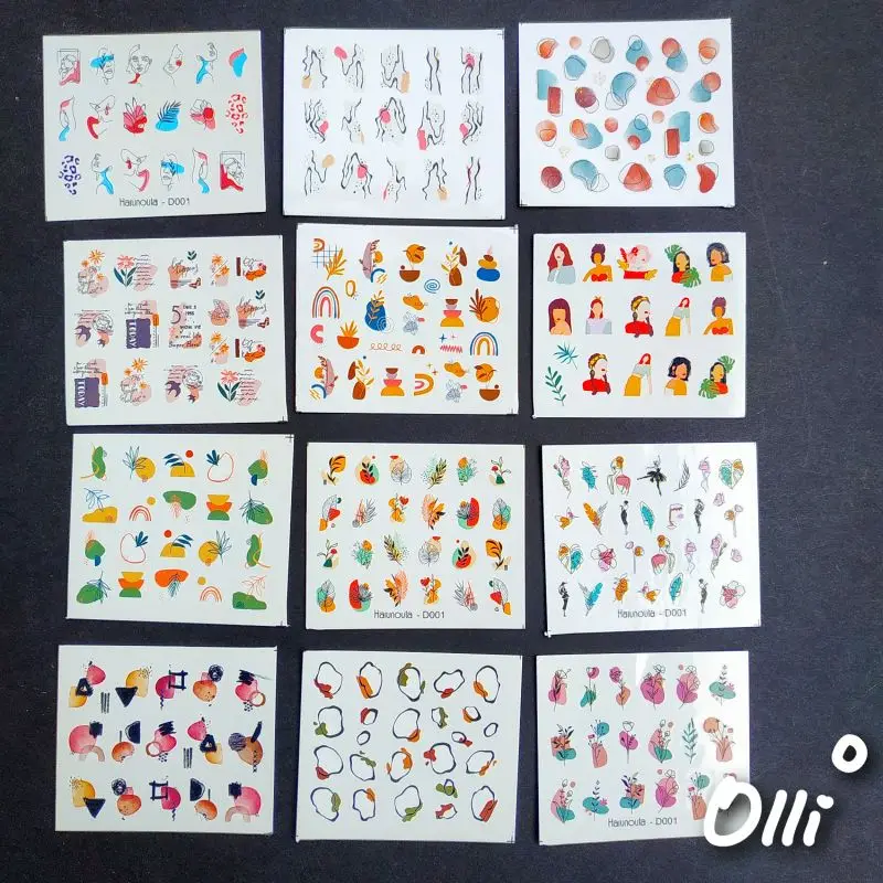 Наклейки для ногтей Harunouta 12 шт., водные Геометрические линии для сексуальных девушек, простые весенние наклейки с цветочными листьями, Слайдеры для украшения ногтей сделай сам