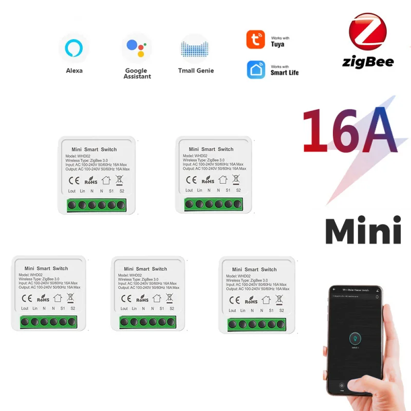 Умный выключатель Tuya Zigbee, 10 а16 А, светодиодный светильник ель сделай сам с поддержкой 2-стороннего управления, умный выключатель