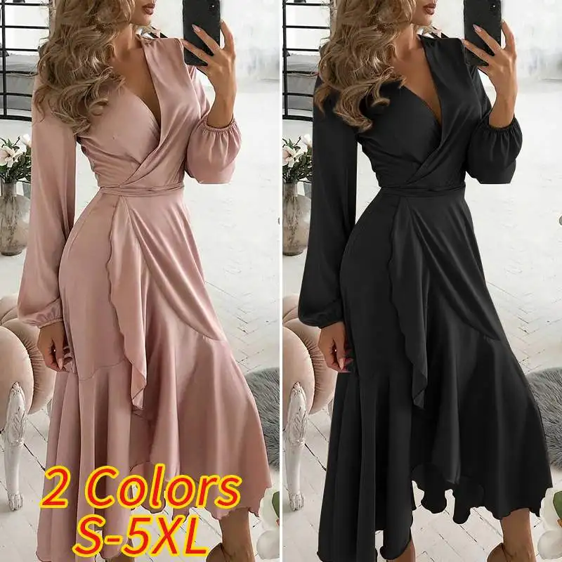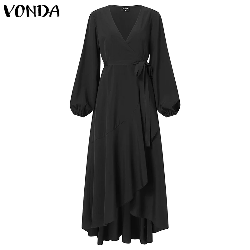 Женское сексуальное офисное платье с глубоким V-образным вырезом, длинное женское платье для вечевечерние 2021 VONDA, пляжный сарафан, женское платье