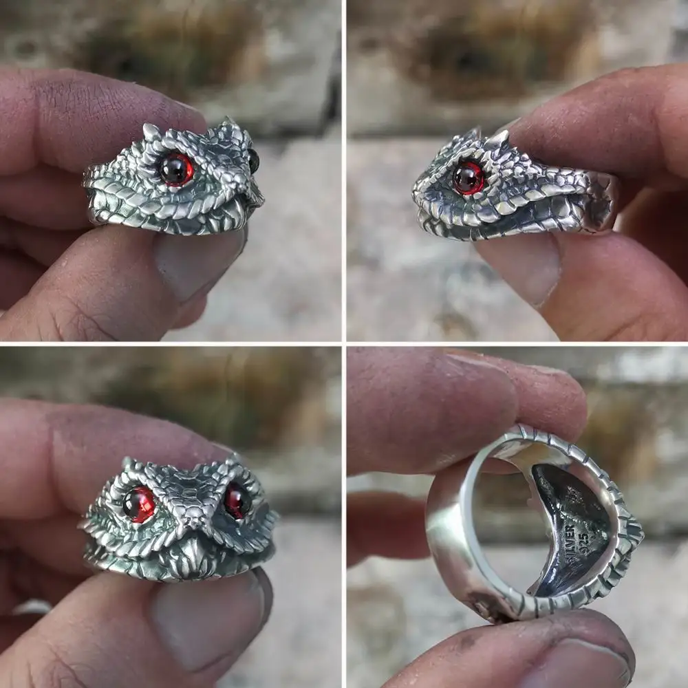 С красными глазами, 925 пробы серебро Сумматор Гадюка, змея кольцо мужские Байкер панк кольцо TA267 нам Размеры для возраста от 7 до 15