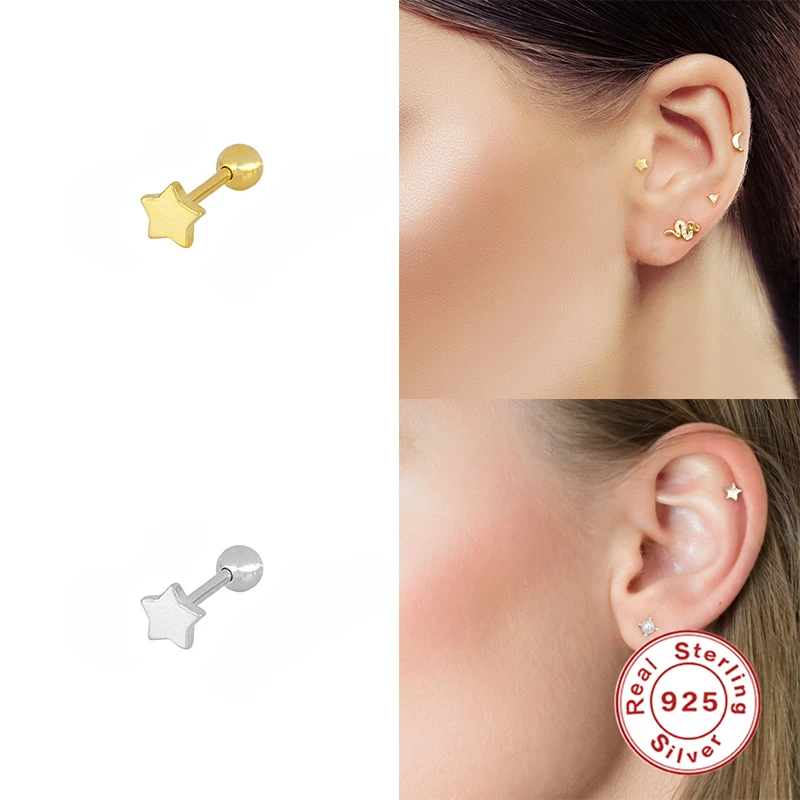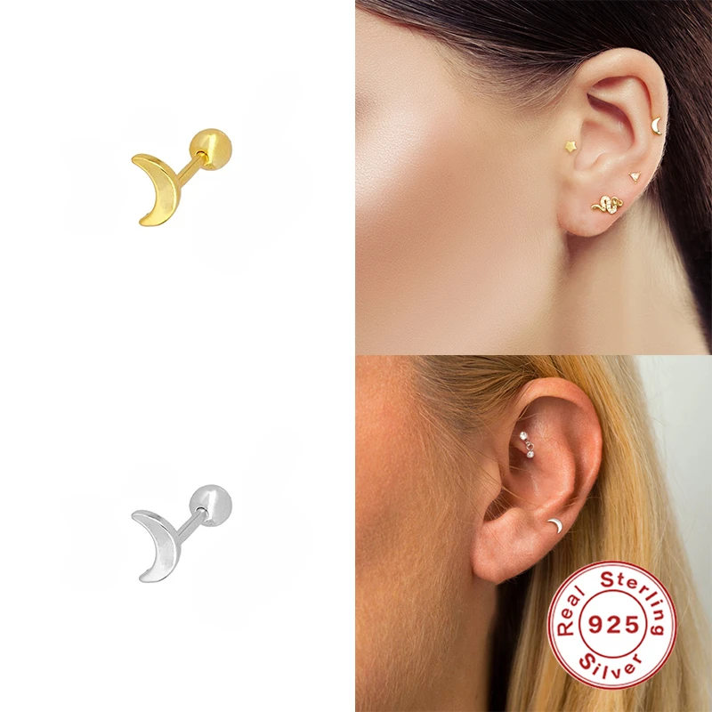Женские серьги-гвоздики в минималистском стиле ROXI, серьги из стерлингового серебра 925 пробы с геометрическим узором в виде Луны, змеи, бабочки, 925